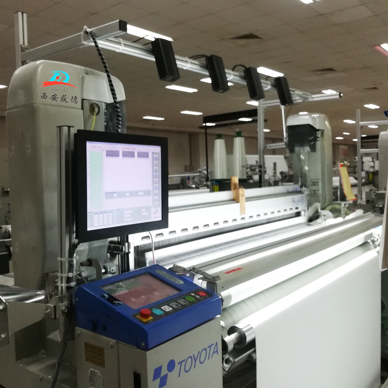 工業布織機在線檢測系統安裝在工業布織機的織口部位,對工業布進行連續不間斷圖像檢測,及時發現各種疵點,對嚴重的織疵,停機告警并由人工處理,對可忍受的紗疵做統計和記錄,以作為等級評定的原始數據,這樣可最大程度的減少疵點對最終織物的影響,甚至可以做到織出的布就是合格品,不用再驗布和修布,可以在上位機打印或拷貝本卷布的數據文件,直接出廠,減少流程,降低成本。