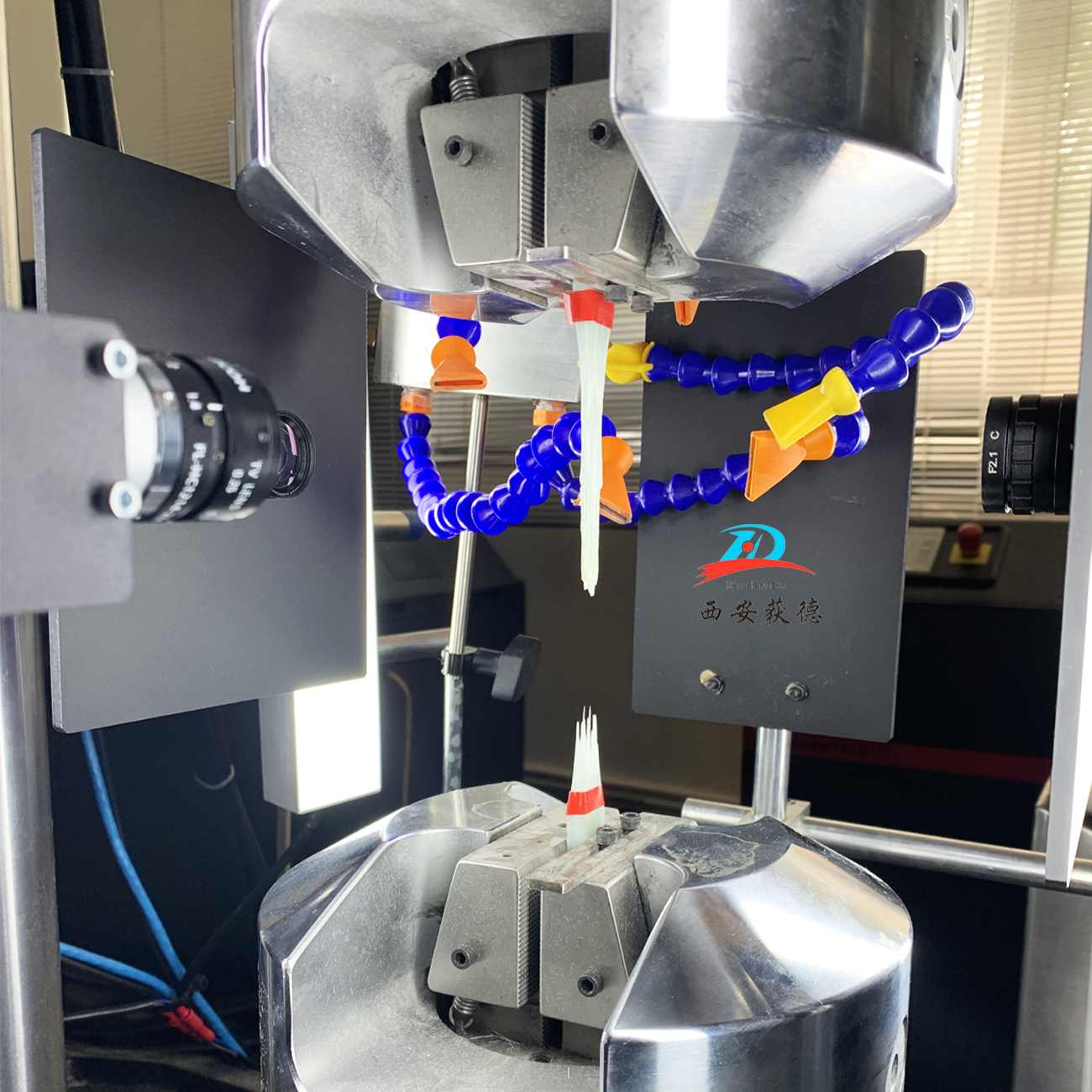 玻璃纖維復合材料雖然具有強度高的優點,但是其韌性都相對偏低。疲勞實驗是使用機械將特制玻璃板上下拉扯,測試其特性的實驗。西安獲德采用機器視覺技術設計了一款玻璃纖維復合材料的疲勞測試視覺監控系統。