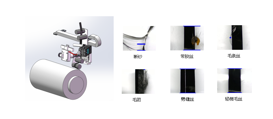 1.檢測缺陷:翻轉、加捻、寬度、大小頭、毛絲、毛球等;